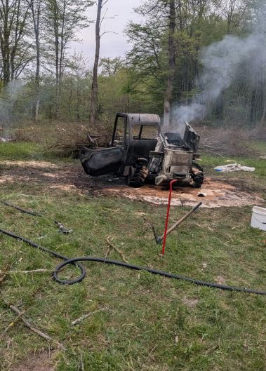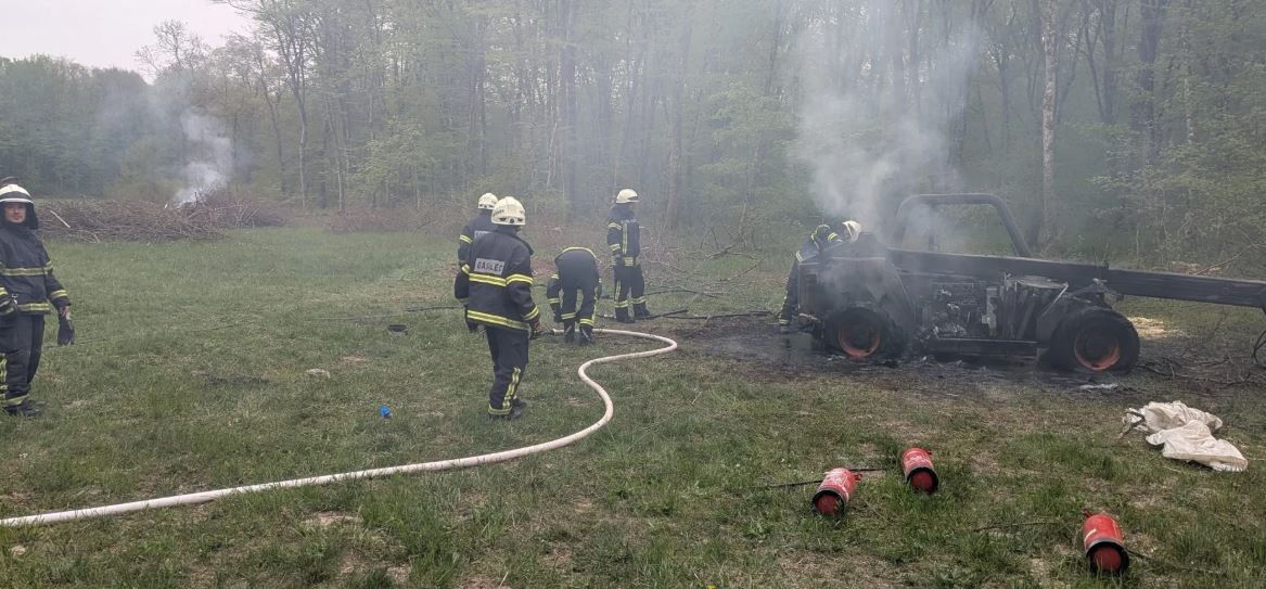 Včeraj, 13. aprila 2026, so bili gasilci ob 15.45 uri nas je ReCO Brežice obvestil o požaru delovnega stroja v Krakovskem gozdu blizu naselja Veliki Podlog (MO Krško). Izvozili so s petimi gasilci-tehničnimi reševalci ter tremi gasilskimi vozili. Ob prihodu na kraj dogodka smo zavarovali območje ter skupaj z gasilci PGD Veliki Podlog požar pogasili. Delovni stroj smo dodatno še ohladili ter nevtralizirali razlite motorne tekočine. Na požarni straži so ostali gasilci PGD Veliki podlog. V enoto so se vrnili ob 16.54, še sporočajo s PGE Krško.