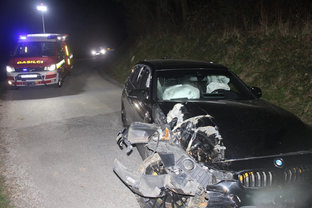 Nočna nesreča pri Krškem: vozilo silovito trčilo v drevo