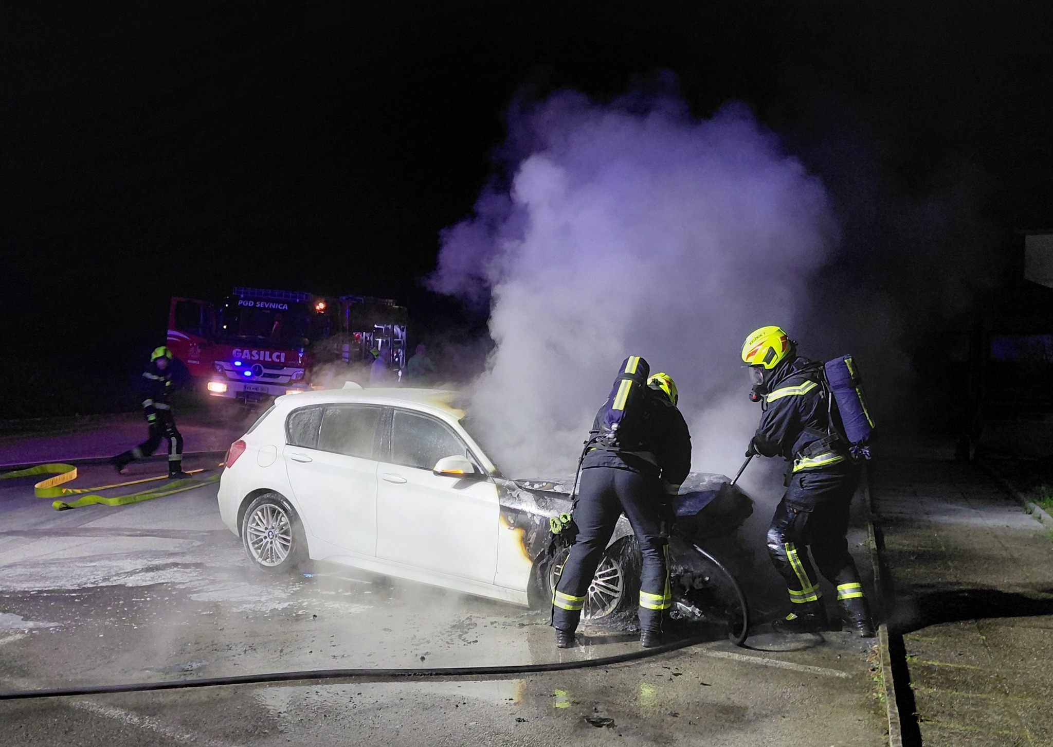 Sredi noči na parkirišču zagorelo osebno vozilo, ogenj poškodoval tudi sosednja vozila