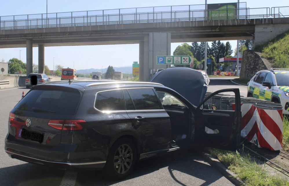 To so prizori prometne na avtocesti pri Čatežu ob Savi: avto trčil v ograjo! (FOTO)