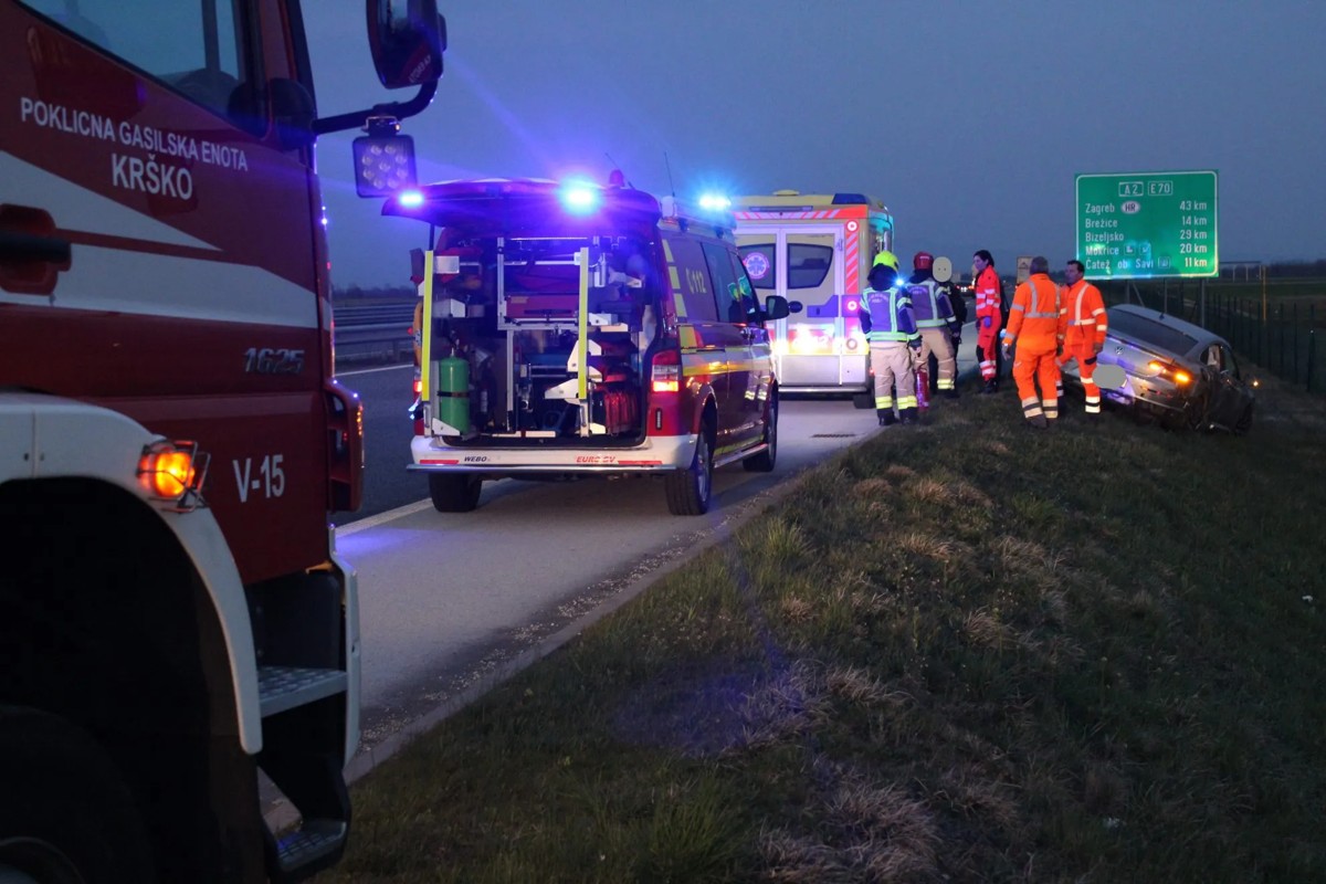 Večerna nesreča na AC Drnovo–Čatež: gasilci, reševalci in policija na terenu (FOTO)
