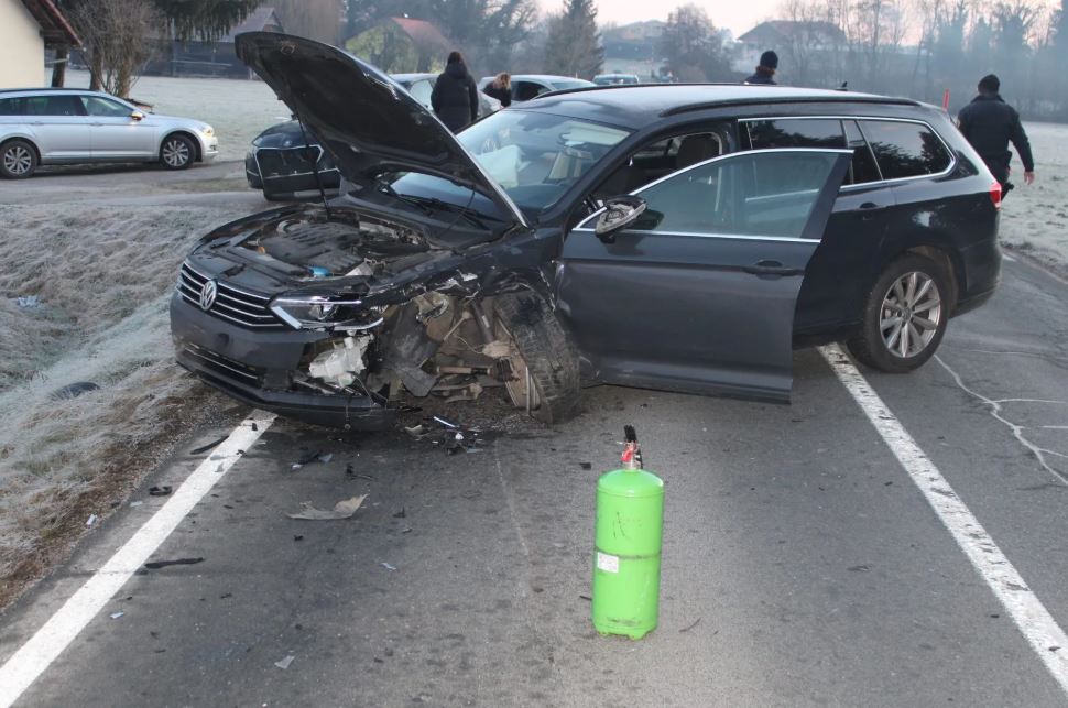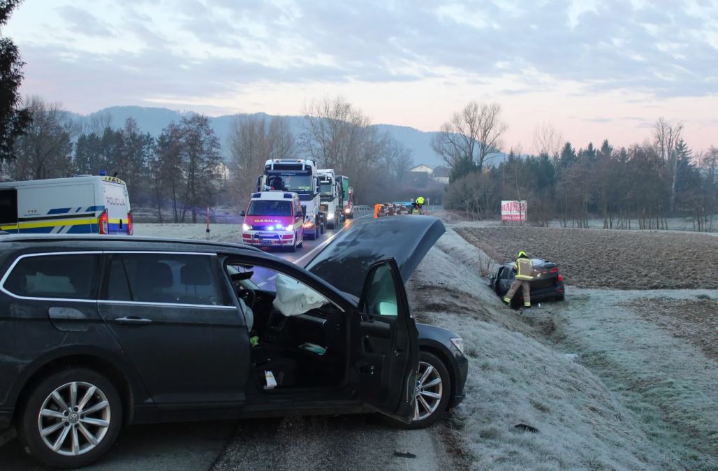 Zgodnje jutranje trčenje pri Brežicah, eno osebo odpeljali (FOTO)