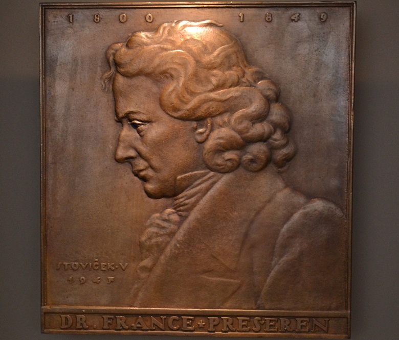 Fotografija: Vladimir Štoviček, France Prešeren, 1947, plaketa, bron, 26.5 x 24.7 cm, inv. št: MMK;VŠ-69. Foto: Nina Sotelšek, hrani dokumentacija MMK.