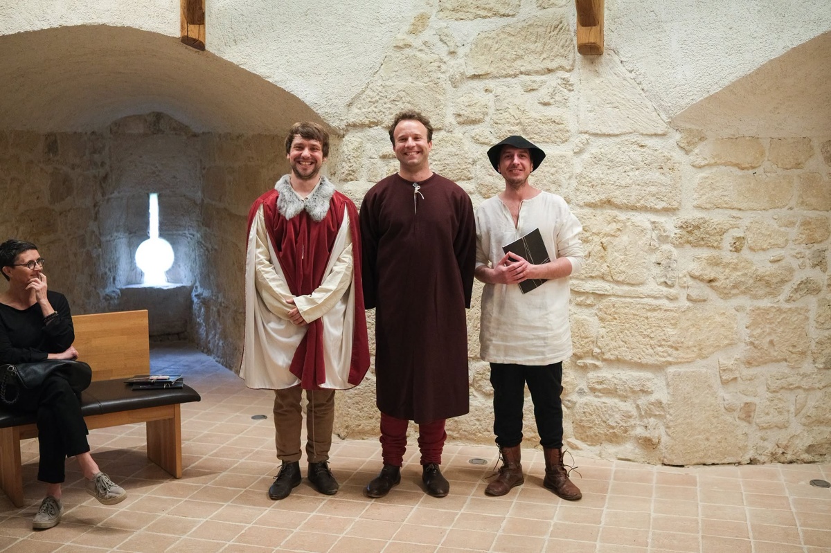 Srednjeveška trilogija združuje kulturno dediščino z interaktivnimi uprizoritvenimi pristopi. Prvi dve predstavi sta zasnovani kot pohodno gledališče, v katerem obiskovalci aktivno soustvarjajo dogajanje. V predstavi Sprehod v preteklost so jih igralci popeljali po različnih delih gradu – od grajskega atrija do predgradja in grajske kleti – ter kot srednjeveški plemiči in kmetje z njimi delili svoje zgodbe, naloge in razmišljanja.