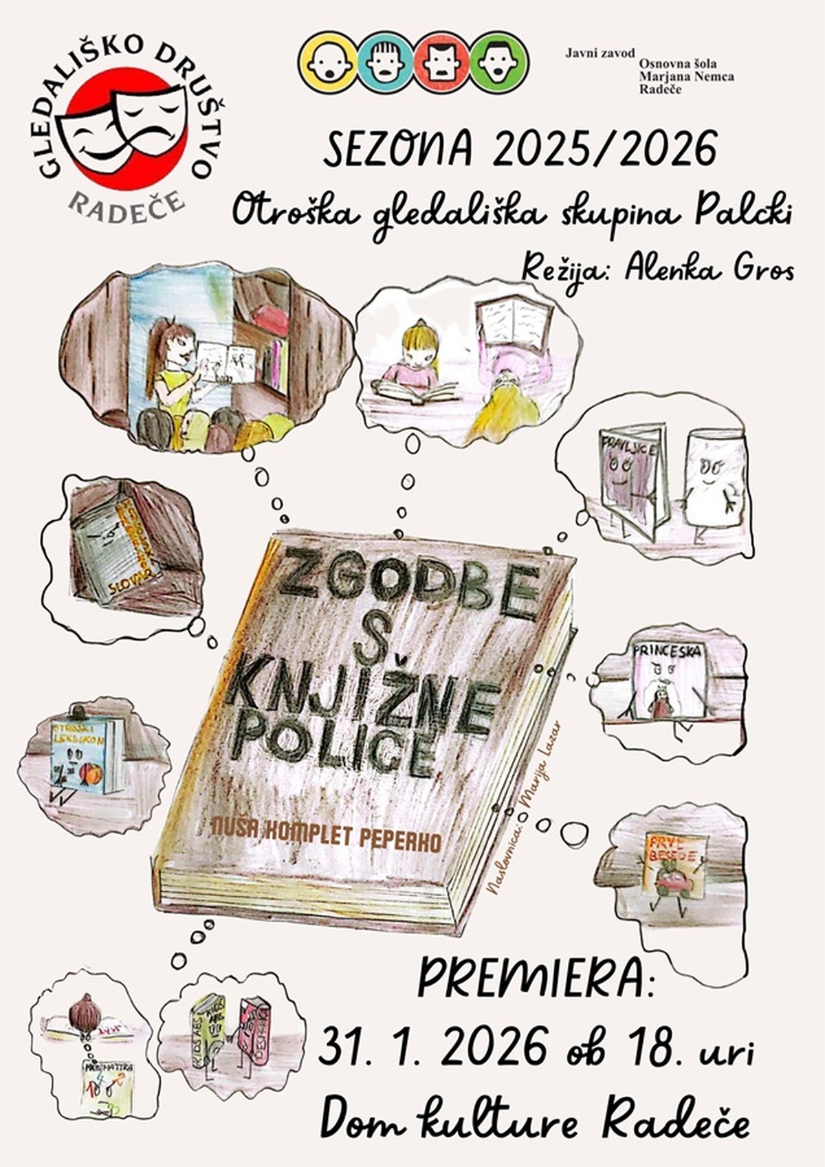 Poučna vsebina, privlačni in barviti kostumi, preproste knjižne police in odlični mladi igralci so navdušili gledalce, ki so napolnili dvorano do zadnjega kotička in uživali v simpatični predstavi, v sklopu katere je prvič nastopila otroška gledališka skupina Palčki, ki deluje pod okriljem Gledališkega društva Radeče.
