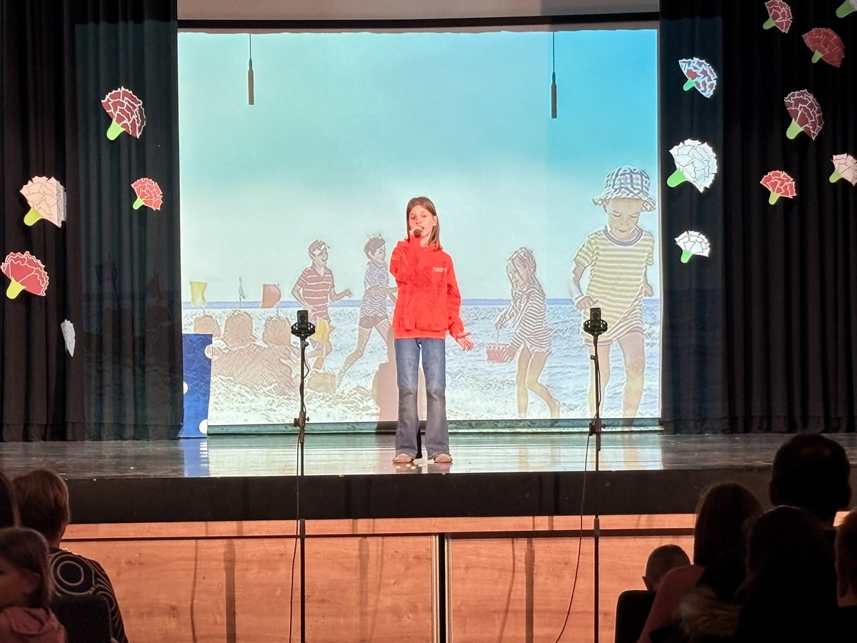 Tako smo spoznali 4 tretješolke, ki so se prelevile v 4 črne mravljice in kot povezovalni člen med točkami odigrale 4 kratke zgodbice iz knjige Anje Štefan, prvošolci in drugošolci so recitirali dela Anje Štefan in Ferija Lainščka, četrtošolci so pripravili zanimivo upodobitev Mojce Pokrajculje, petošolci so nadvse izvirno zrecitirali Rozmanovega Povodnega moža, podlago zanj so pred njimi dale osmošolke z originalom, sedmo- in osmošolke pa predstavo Prvi šolski ples, ki so jo obogatile s plesnimi vložki. Seveda ni manjkalo tudi glasbe, saj so se s prepletom ljudskih in umetnih pesmi predstavili vsi 3 zbori, ki delujejo na šoli, sam začetek in konec prireditve pa sta oznanili pevski točki, v katerih sta najprej pesem Moja dežela zapeli Kaja in Zara, na koncu pa še Zala krasno balado Mi, otroci morja.