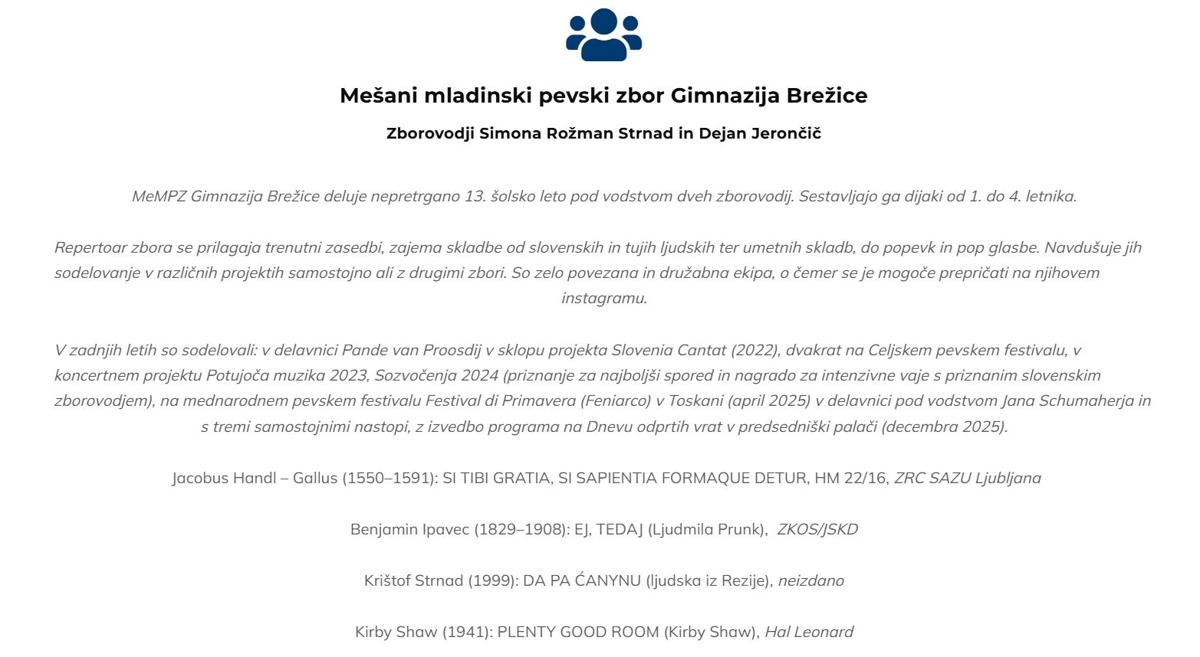 Dosežek Mešanega mladinskega pevskega zbora Gimnazije Brežice je zato pomembna potrditev dolgoletnega kakovostnega dela, zavzetosti pevk in pevcev ter strokovnega in navdihujočega vodenja zborovodij. Hkrati pa predstavlja močno spodbudo za nadaljnje ustvarjanje, razvoj in ponosno predstavljanje Gimnazije Brežice ter brežiške in posavske kulturne skupnosti v širšem slovenskem prostoru.