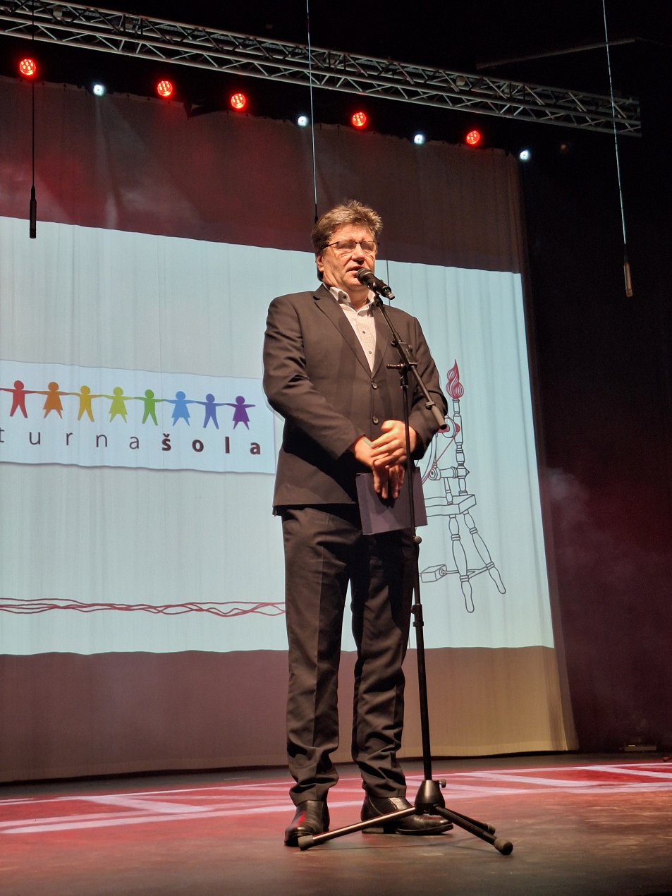 Župan Občine Brežice Ivan Molan se je odzval vabilu in se v domu kulture udeležil šolske prireditve, posvečene praznovanju 20. obletnici delovanja folklorne dejavnosti na Osnovi šoli Brežice in kulturnemu dnevu.