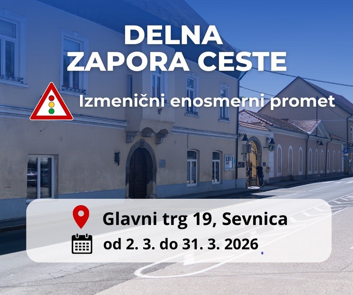 V marcu bo zaradi obnove strehe in fasade na objektu Glavni trg 19 promet ob stavbi potekal izmenično enosmerno, urejan s semaforji. Voznike prosimo za strpnost in dosledno upoštevanje prometne signalizacije.