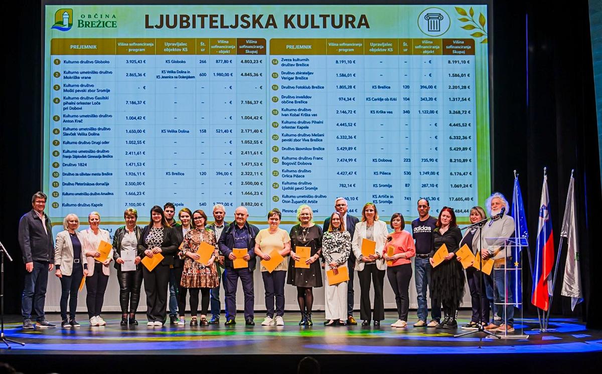 V sredo, 23. aprila 2026, je v Domu kulture Brežice potekala predstavitev rezultatov javnih razpisov Občine Brežice za področja športa, kulture, mladine, turizma ter zdravstva in sociale, skupaj s slovesno podelitvijo pogodb predstavnikom društev in drugih nevladnih organizacij.