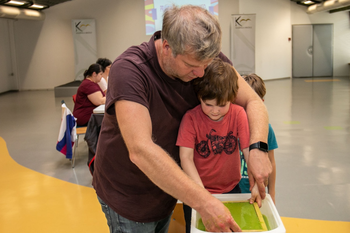 Na aprilskem srečanju so udeleženci naredili korak naprej. Iz enakih materialov, ob dodatni meri spretnosti in veliko dobre volje, so se preizkusili v izdelavi lastnega papirja. Ustvarjalni proces jih je tako navdušil, da pri enem poskusu niso ostali – papir so izdelovali znova in znova ter raziskovali različne možnosti oblikovanja.