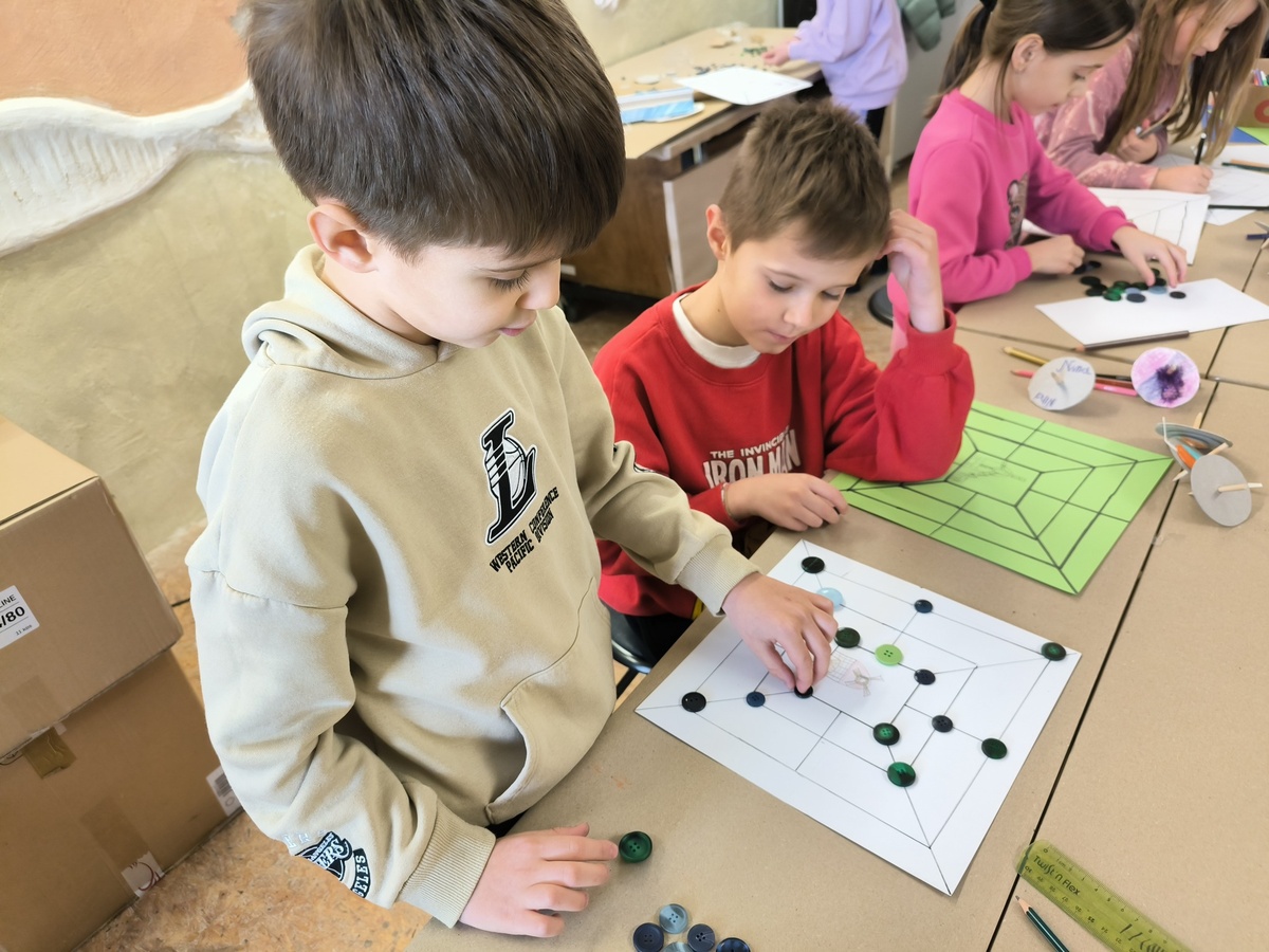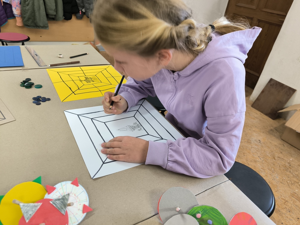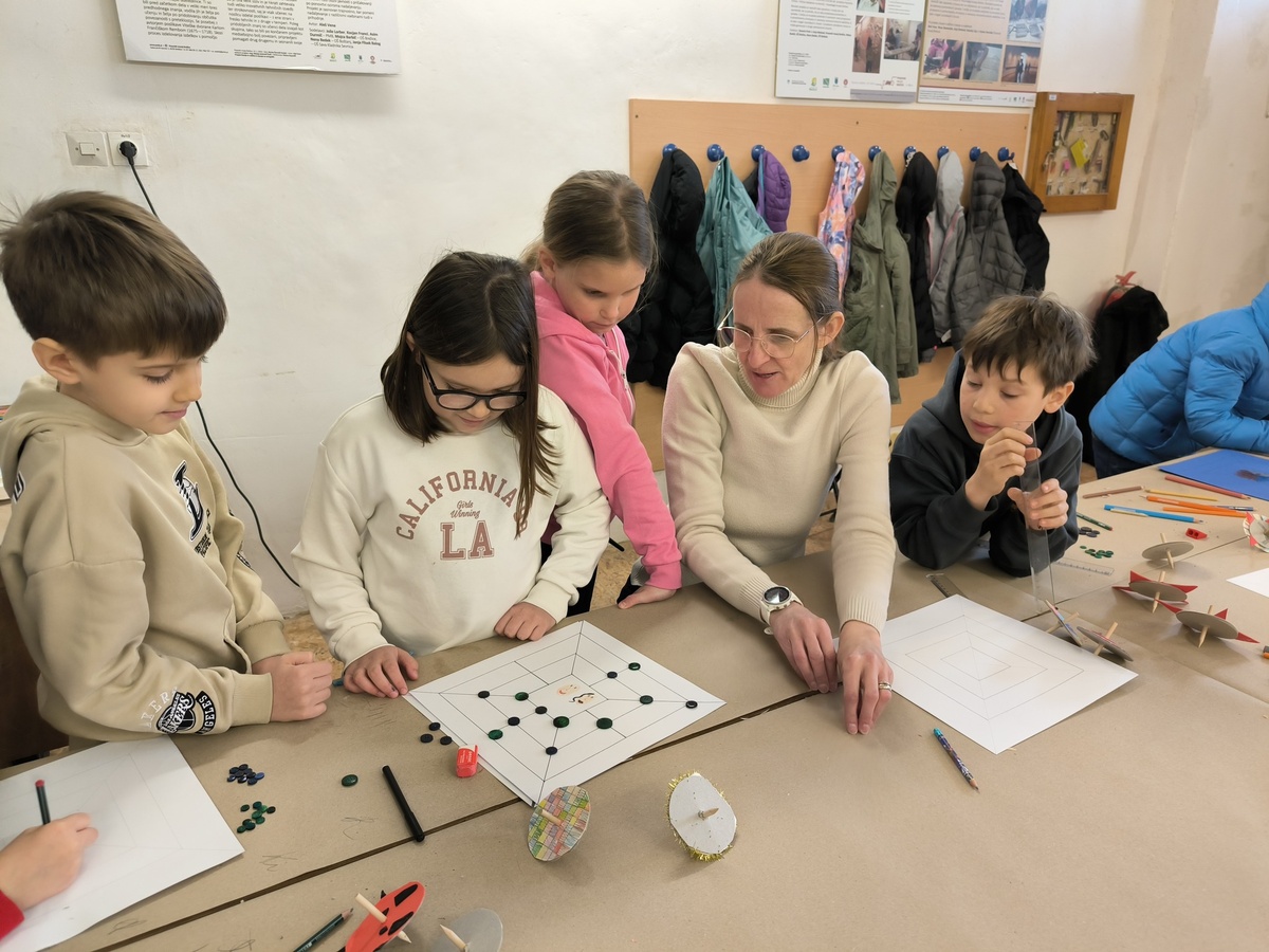 Na ustvarjalni delavnici so otroci izdelovali vrtavke in namizno igro mlin. Spoznali so, iz kakšnih materialov so bile igrače narejene nekoč ter kako delujejo. Z veliko mero natančnosti, domišljije in barv so nastajale unikatne vrtavke in lično oblikovane igralne plošče za mlin.