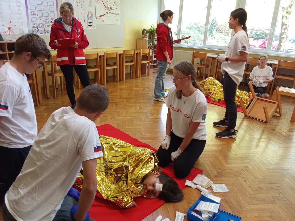18. 4. 2026 je Območno združenje Rdečega križa Krško organiziralo regijsko preverjanje znanja iz prve pomoči (PP) za učence Dolenjske in Bele krajine ter Posavja.