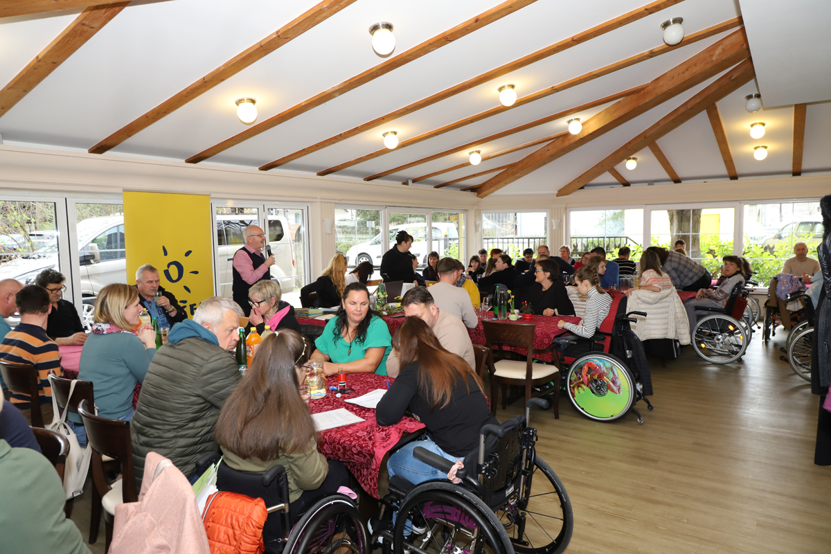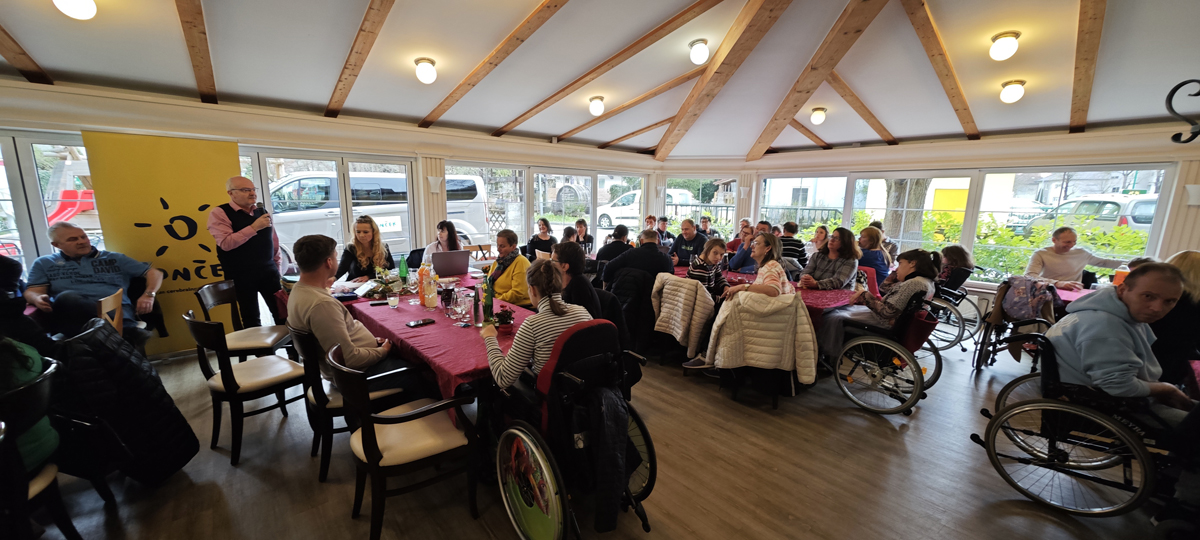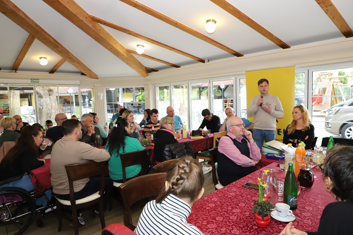 Prisluhnili smo uvodnem govoru predsednice društva Nataše Solomun in besedam predsednika Zveze Sonček Iztoka Suhodolnika. Z Zvezo Sonček sodelujemo že 30 let in smo v vseh teh letih skupaj ustvarili številne uspešne zgodbe, gradili medsebojno zaupanje ter prispevali k boljšemu vključevanju in kakovosti življenja naših uporabnikov. Veselimo se nadaljnjega sodelovanja in novih skupnih uspehov, saj so njihova podpora, strokovnost in predanost za nas neprecenljive. Gospa Dunja Lužar, ki je zaposlena na Zvezi Sonček, je vsem prisotnim predstavila nov projekt z nazivom »Niste sami - Skupaj do večje podpore vaši družini«. Namen projekta je omogočiti družinam otrok s posebnimi potrebami dodatno pomoč, podporo in povezovanje, da lahko skupaj gradimo bolj vključujoče okolje za vse generacije in ustvarjamo pogoje za bolj samostojno in kakovostno življenje. Vsak otrok in vsaka družina potrebujeta podporo, razumevanje in možnosti za vključeno življenje v skupnosti.