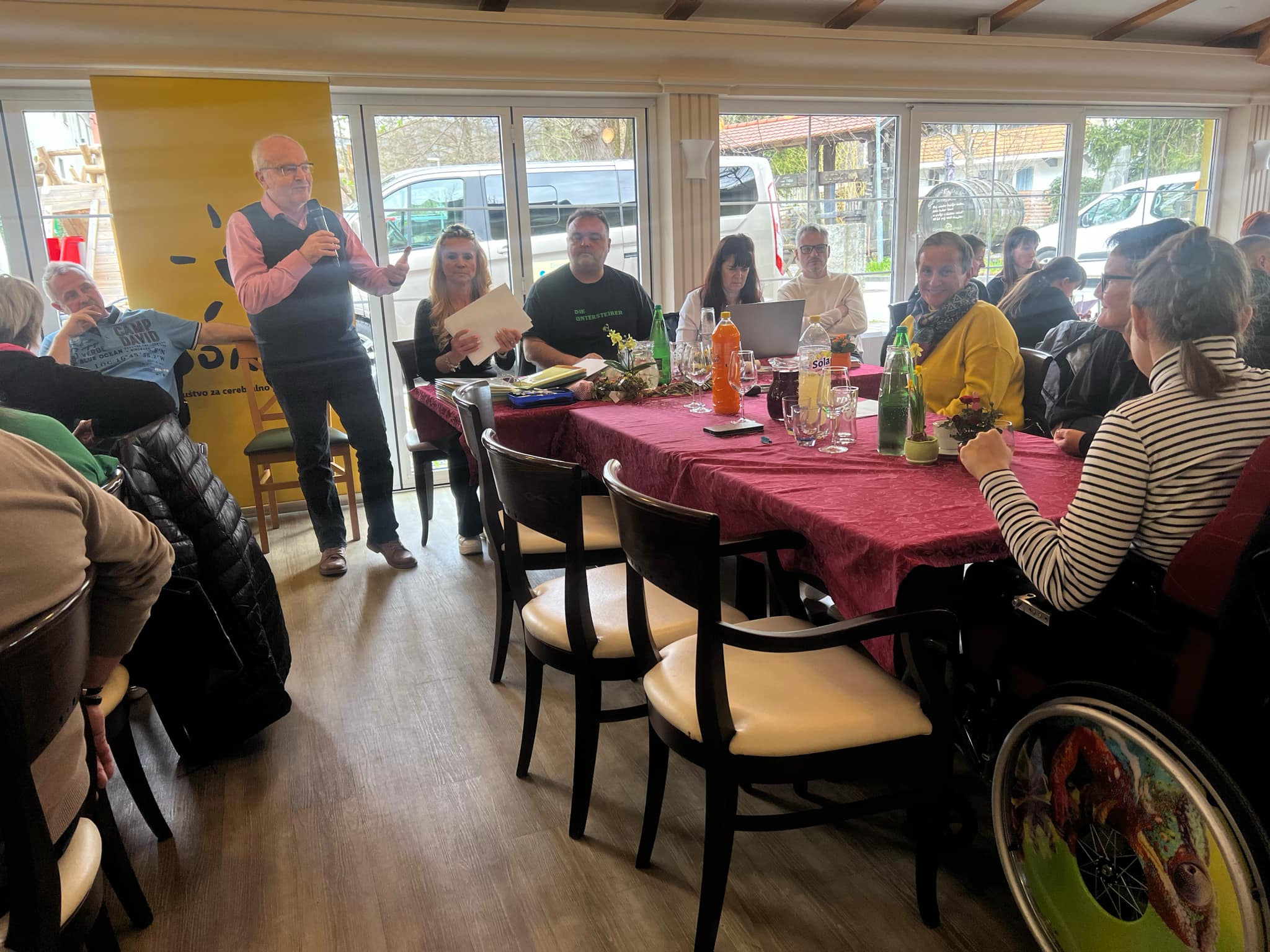 Naj se na tem mestu iz srca zahvalimo vsem donatorjem in vsem, ki kakorkoli pomagajo pri izvedbi programov. V slogi je moč. Hvala vam! Preostanek popoldneva smo izkoristili za druženje in sladkanje z dobrotami trgovine MITA, katerim smo hvaležni za celoletno donatorstvo. Iskreno se zahvaljujemo Gostišču Senica za čudovito pripravljeno pogostitev. Pri njih se že počutimo precej domače in to je res dober občutek. Za krasne domače sladice so ponovno poskrbele članice društva, hvala vsem. Občni zbor je za nami, mi pa gremo novim zmagam naproti. Vir in foto: Društvo