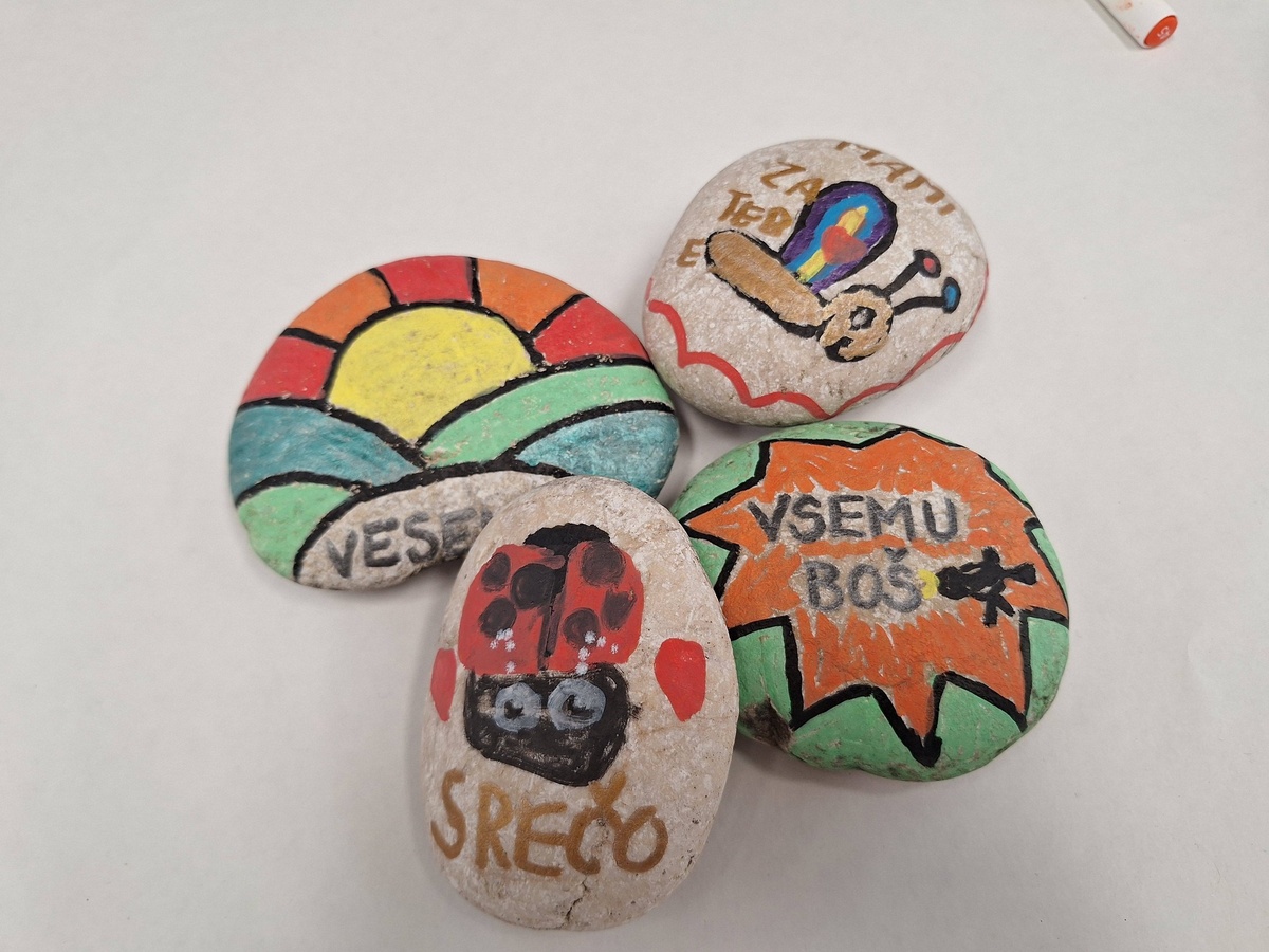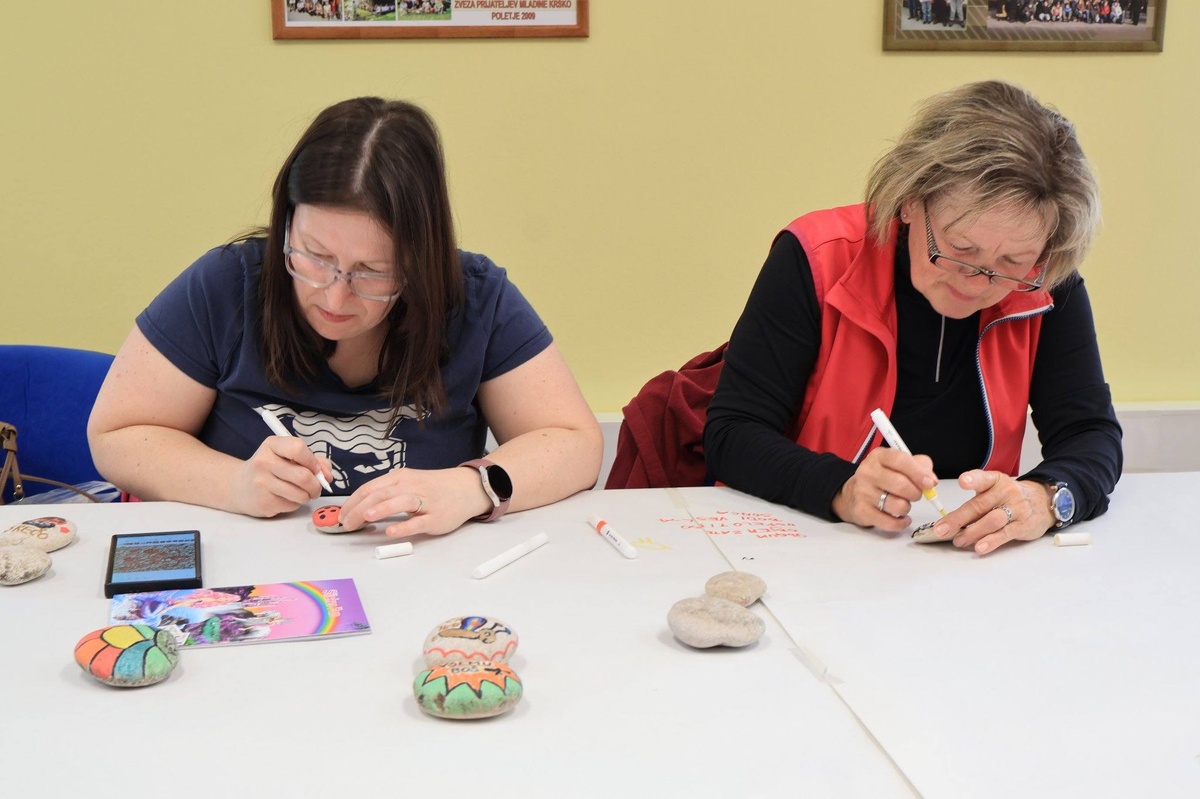 V Dnevnem centru ZPM Krško so udeleženci ustvarjali unikatne kamenčke s pozitivnimi sporočili. Nastali izdelki so nato našli svoje mesto ob ribniku Resa, kjer so jih razporedili po okolici. Kamenčki bodo tako naključnim mimoidočim prinašali drobne trenutke veselja in jim polepšali dan.