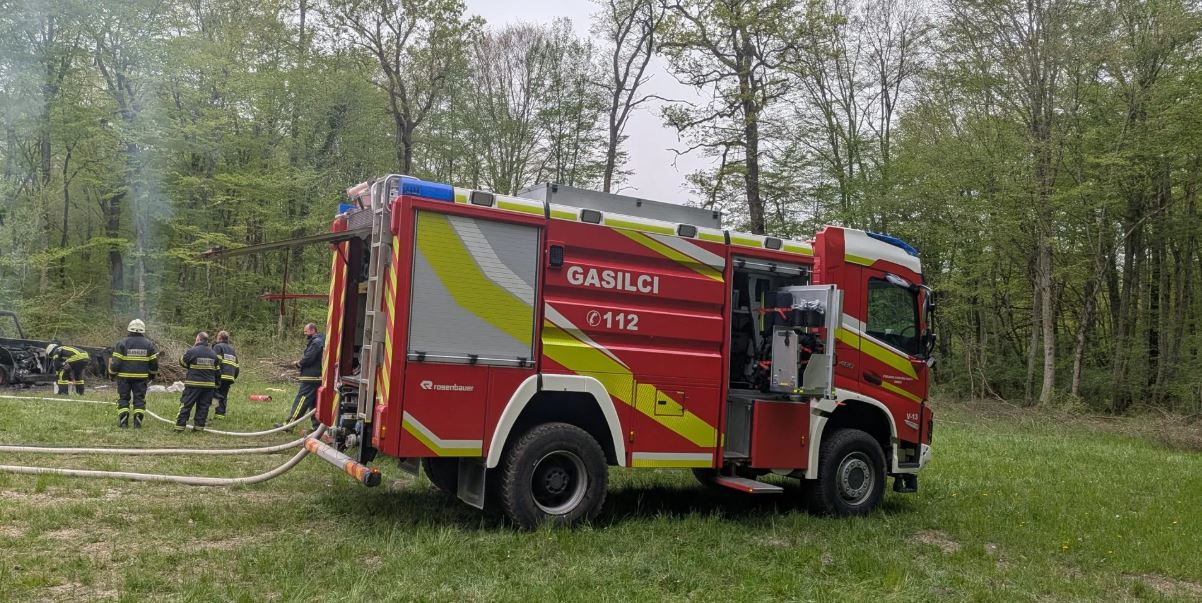 Včeraj, 13. aprila 2026, so bili gasilci ob 15.45 uri nas je ReCO Brežice obvestil o požaru delovnega stroja v Krakovskem gozdu blizu naselja Veliki Podlog (MO Krško). Izvozili so s petimi gasilci-tehničnimi reševalci ter tremi gasilskimi vozili. Ob prihodu na kraj dogodka smo zavarovali območje ter skupaj z gasilci PGD Veliki Podlog požar pogasili. Delovni stroj smo dodatno še ohladili ter nevtralizirali razlite motorne tekočine. Na požarni straži so ostali gasilci PGD Veliki podlog. V enoto so se vrnili ob 16.54, še sporočajo s PGE Krško.