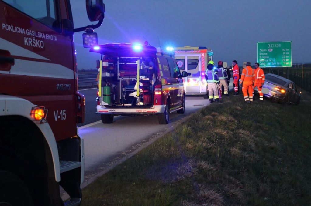 Večerna nesreča na AC Drnovo–Čatež: gasilci, reševalci in policija na terenu (FOTO)