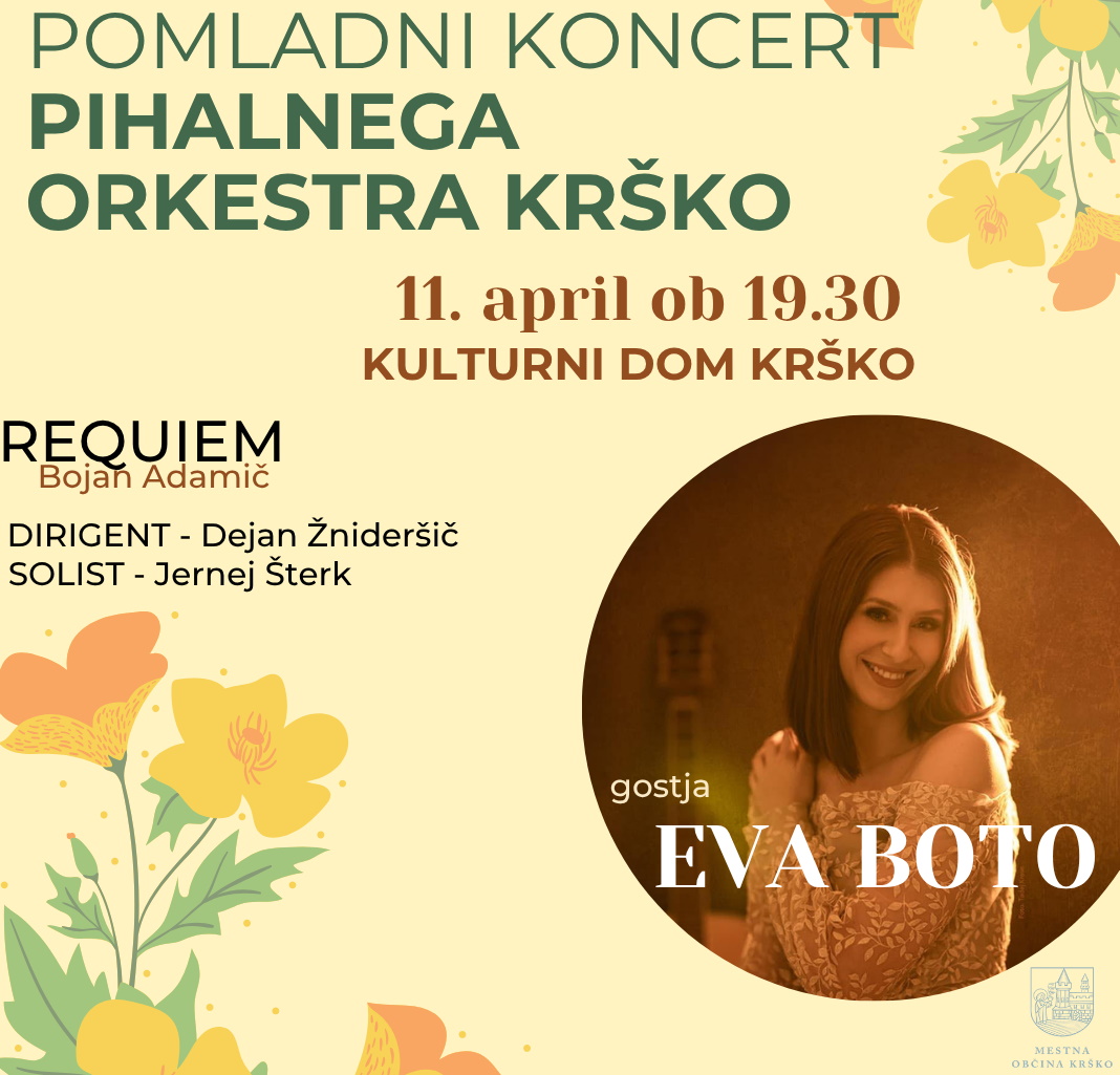 V sklepnem delu koncerta se bo orkestru pridružila še priljubljena pevka Eva Boto. S svojo energijo bo poskrbela za sproščeno in pomladno vzdušje, ki bo zaokrožilo glasbeni večer v Krškem.