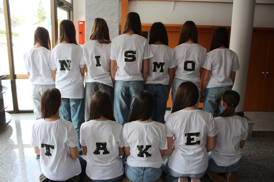 A kot naslov pravi - Nismo take, tudi 12-članska dekliška igralska zasedba poudari, da seveda one same niti kot posameznice niti kot tesne prijateljice niso take, kot so se v igri predstavile. Z odra je bilo namreč zaznati zlobo, privoščljivost in aroganco, pa slišati kletvice in zasmehovanje ter videti prerivanje in udarce. Radeške učenke niso take, so pa s tem, ko so se vživele v like, ki so jim bili dodeljeni, nazorno prikazale, kam vse v neželene in neprijetne, celo tragične situacije, lahko pride - če bi take bile ...