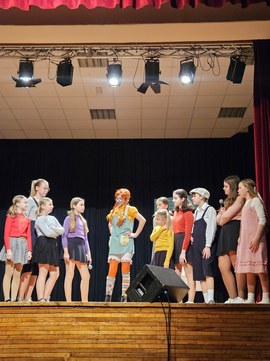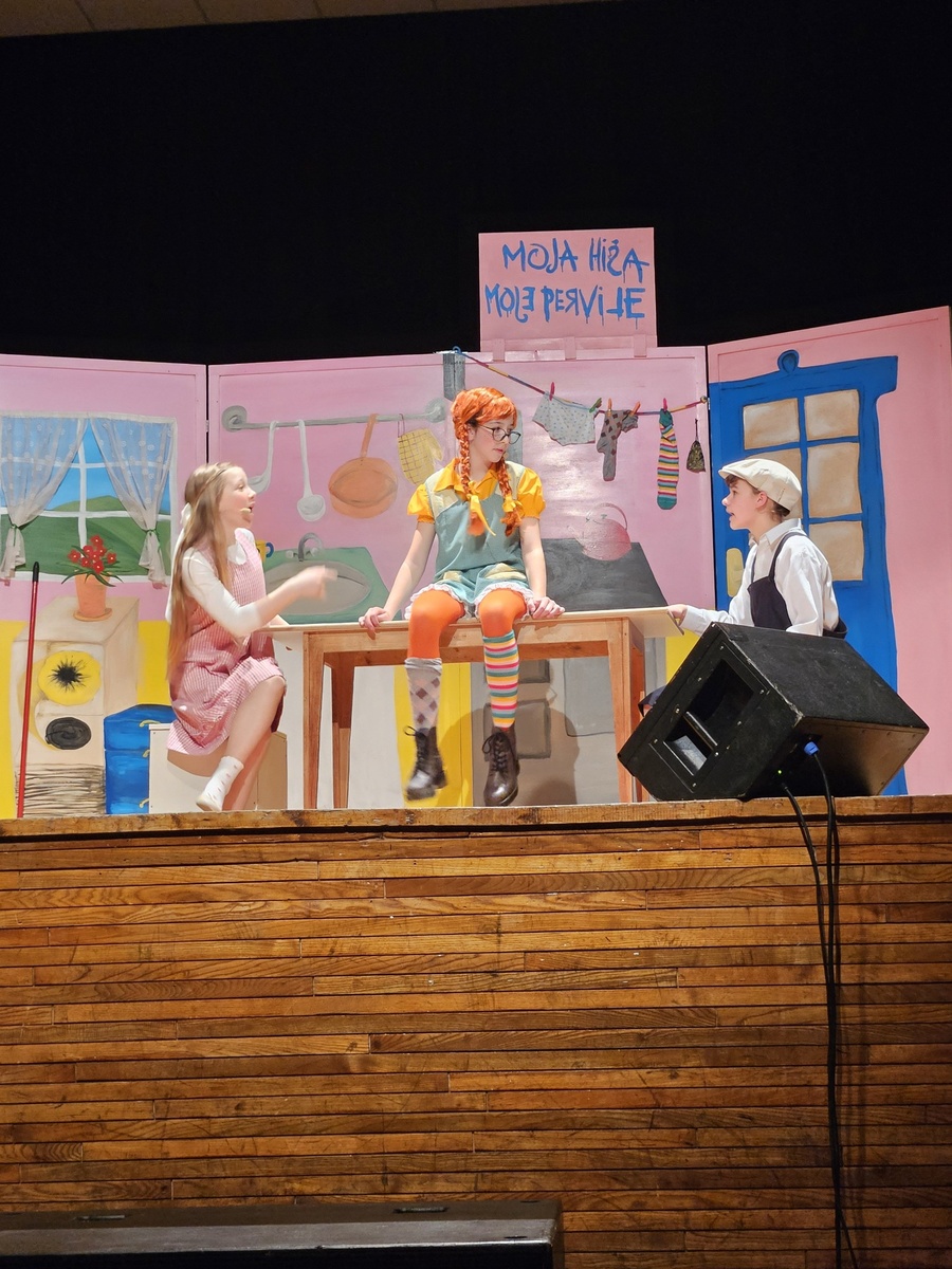 »Moja hiša, moje pervile …« — tako je Pika postavila pravila tudi pri nas na šoli, kjer smo praznik kulture obeležili z navdihujočo, razigrano in iskreno predstavo, polno domislic ter igrive ustvarjalnosti. Na odru je zaživela Pika Nogavička, ki letos praznuje častitljivih 80 let. Pravzaprav jo je njena »mama«, pisateljica Astrid Lindgren, ustvarila že nekoliko prej, ko je svoji bolni hčeri ob postelji pripovedovala zgodbe o navihani deklici z neustavljivo domišljijo.