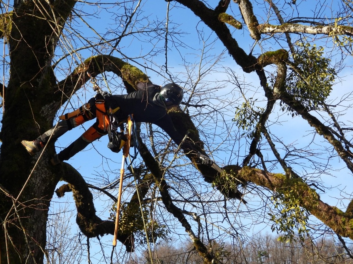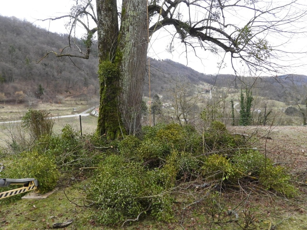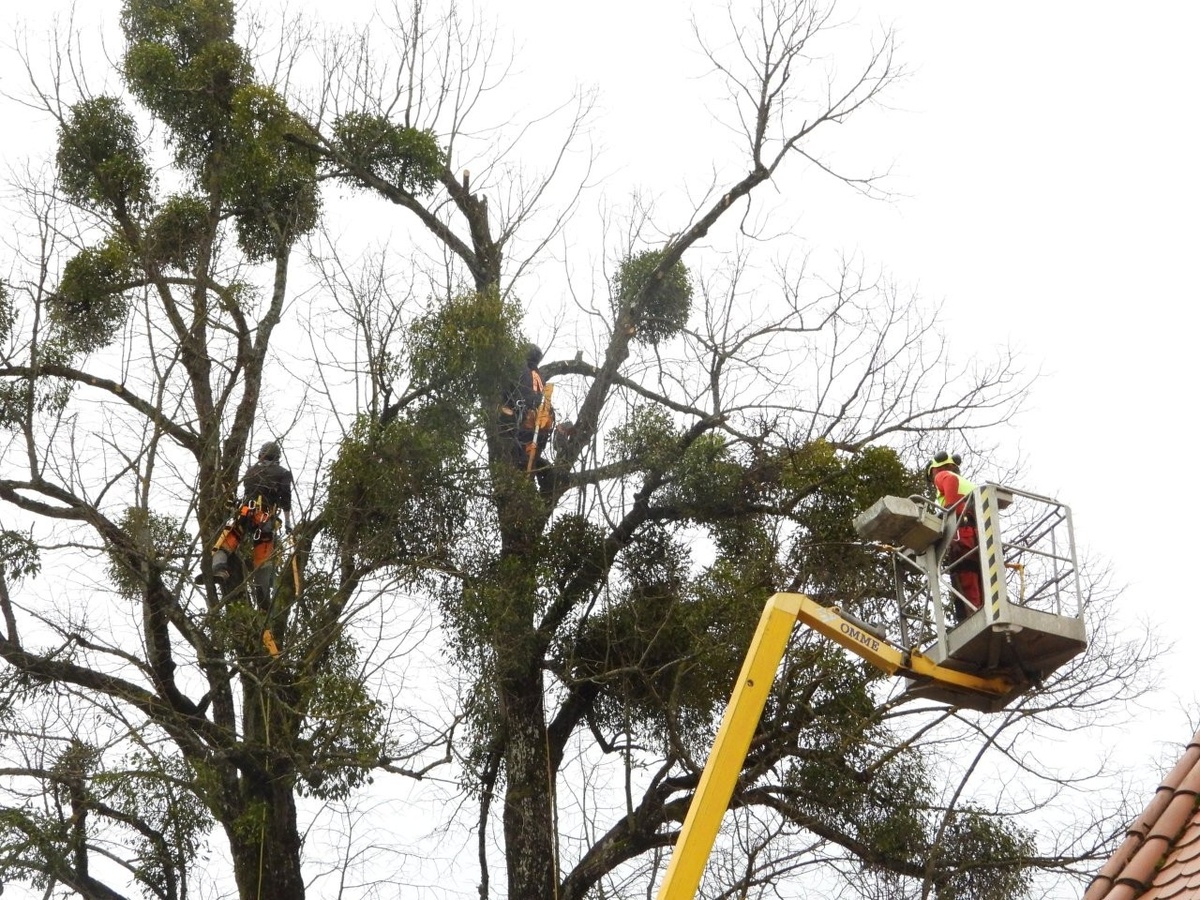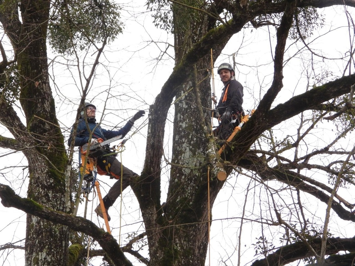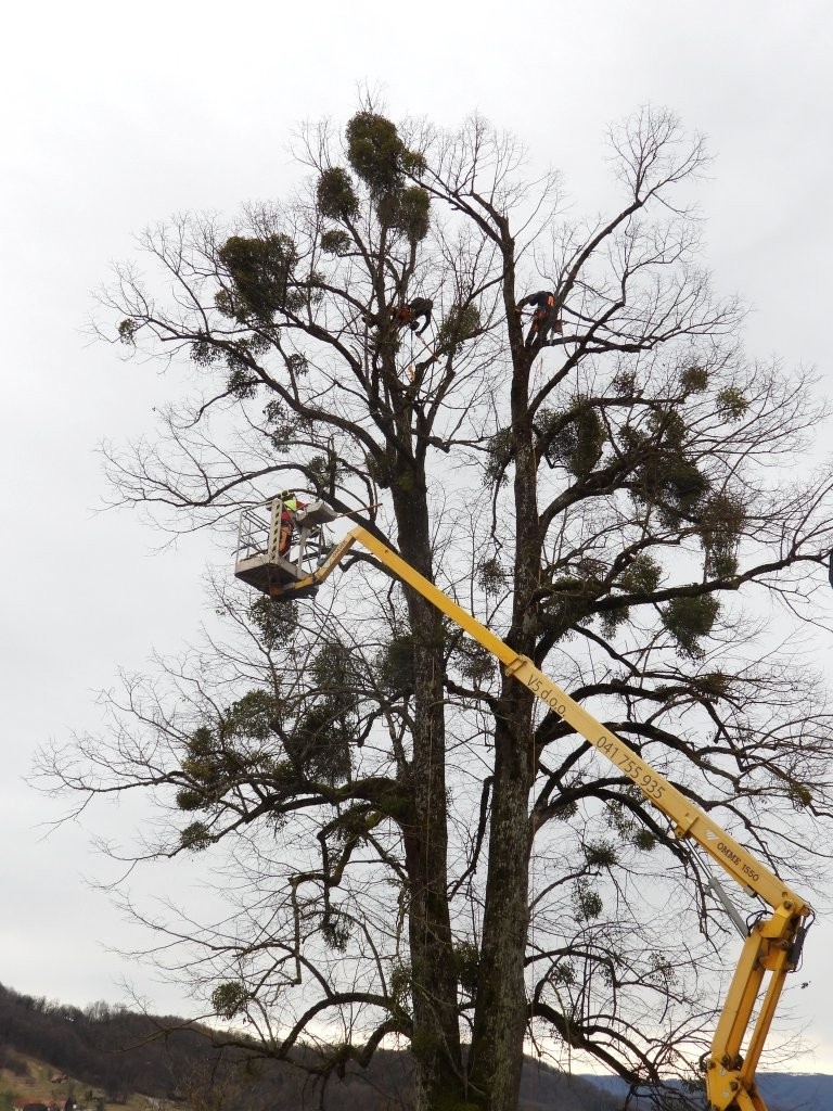 Optimalen čas za obrezovanje lip je sicer avgust, a tudi zimski čas mirovanja ustreza. Trije člani ekipe so se do bele omele in suhih vej prebijali na dva načina – z dvigalom in alpinističnim plezanjem. Vsi vrhunski alpinisti z veliko arborističnega znanja. Z orodjem za pasom so se ob pomoči vrvi prebijali iz veje na vejo, pod krošnjo je bilo na tleh vse več suhih vej in zelenih kroglastih omelinih grmičkov. In kljub zimskemu času zelene krošnje so postajale vse bolj takšne, kot se za lipo v zimskem času spodobi. Za večje drevo je bil potreben kar cel delovni dan, manjša lipa je bila »urejena« do časa kosila. Drugi dan obrezovanja so nas pobožali še sončni žarki, ki so na razbrazdano lubje privabili prebujene šuštarje (rdeče škratce). Votlo vejo pa si je kot potencialno gnezdilno duplo ogledoval plavček. Ob koncu je mimo priletel še prvi letošnji metulj – rumeno obarvan citronček.
