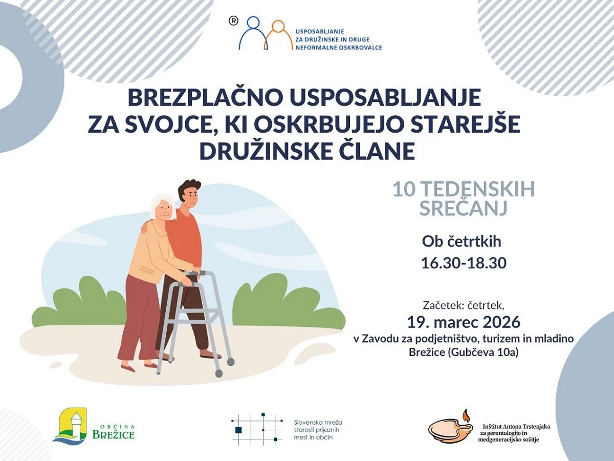 Občina Brežice obvešča, da bo potekalo brezplačno usposabljanje za svojce, ki oskrbujejo starejše, bolne ali onemogle družinske člane.