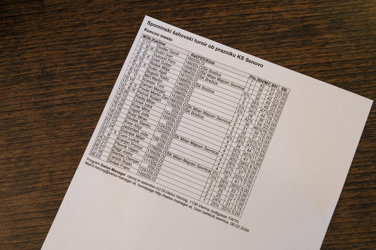 V Gostilni Senica je potekal spominski hitropotezni šahovski turnir ob prazniku KS Senovo, ki sta ga priredila Društvo upokojencev Senovo in Krajevna skupnost Senovo.